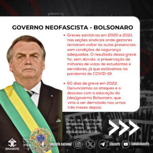 Reivindicações: Cumprimento do acordo de greve assinado em 1º de dezembro de 2005 e, até então, não cumprido pelo MEC e Governo Federal.Resultados: Contra todas as incertezas do que seria entrar em greve por tempo indeterminado durante um governo neofascista, o SINASEFE construiu o seu movimento paredista enfrentando Bolsonaro e desgastando ainda mais a sua imagem dentro do ano em que ele viria a perder a eleição. A pauta da greve era cobrar de Bolsonaro a recomposição salarial emergencial de 19,99%. Não foi aberta negociação e não tivemos mesas para dialogar com o Estado Brasileiro, mas houve um ganho político para o sindicato e sua base, que aderiu com muita força a campanha “Eleger Lula para Derrotar Bolsonaro!” logo em seguida ao fim da greve.