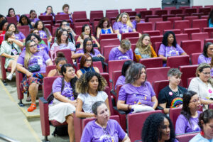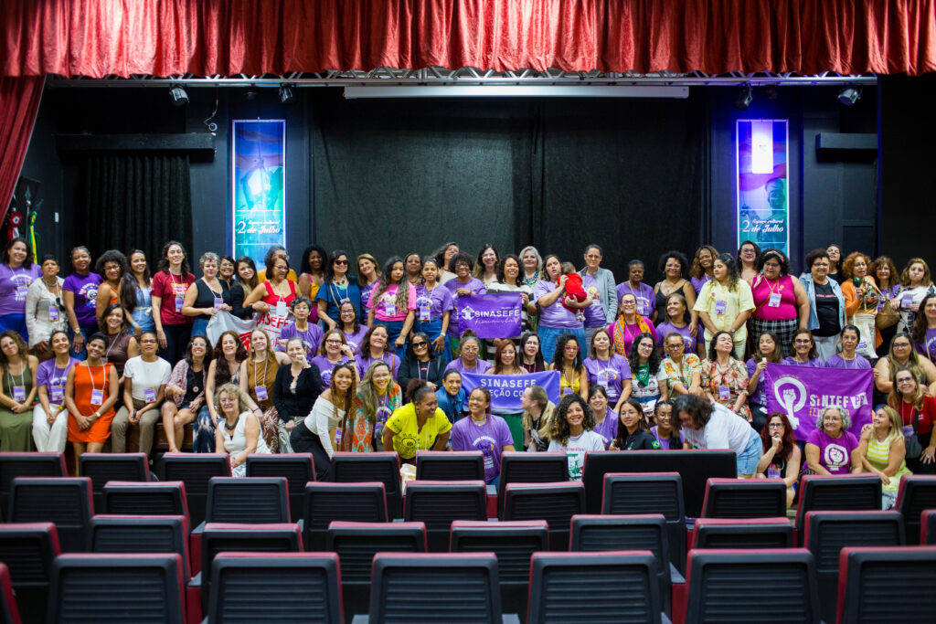 Representando o SINDSIFCE, estiveram presentes Raquel Nepomuceno, Maria da Conceição da Silva, Bárbara Luana, Marlene de Alencar, Fátima de Holanda, Lissa Fontenele e Jenniffer Dantas, conforme deliberado em assembleia.