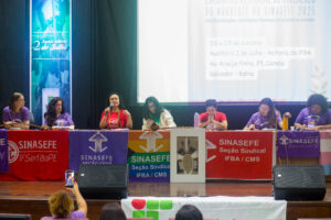 Ao final, a categoria discutiu alguns encaminhamentos. Entre as reivindicações, foi solicitado que o SINASEFE agende uma reunião com o Ministério da Educação (MEC) para defender que servidoras(es) tenham o direito de levar suas/seus filhas(os) em viagens de trabalho, bem como que as servidoras grávidas tenham direito a um período de cuidado, nos moldes do já previsto para o período de lactação.