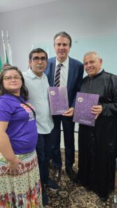 • O Ministro Camilo Santana recebeu uma carta do SINDSIFCE cobrando o cumprimento dos acordos de greve durante a cerimônia de posse do novo reitor do IFCE. O documento foi entregue pelo membro da diretoria, Cezar Amario, e pela representante da base, Patricia Holanda.