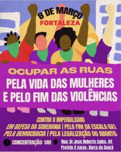 Dia da Mulher é sinônimo de luta. Em Fortaleza, as mulheres irão ocupar as ruas neste domingo (8) contra a violência de gênero, contra o imperialismo, em defesa da soberania e pelo fim da escala 6×1, da democracia e da legalização do aborto. O SINDSIFCE convoca sua base a estar presente neste momento tão importante.