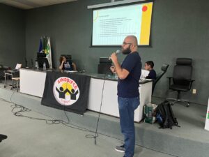 Já a carreira docente foi abordada por Cezar Amario, docente do Campus Umirim e membro da Diretoria Colegiada do SINDSIFCE. Ele abordou pautas urgentes da categoria que não foram cumpridas no acordo de greve, a exemplo da volta da tabela dos percentuais docentes, implementação do ponto eletrônico e publicação da portaria da nova Regulamentação da Atividade Docente (RAD).