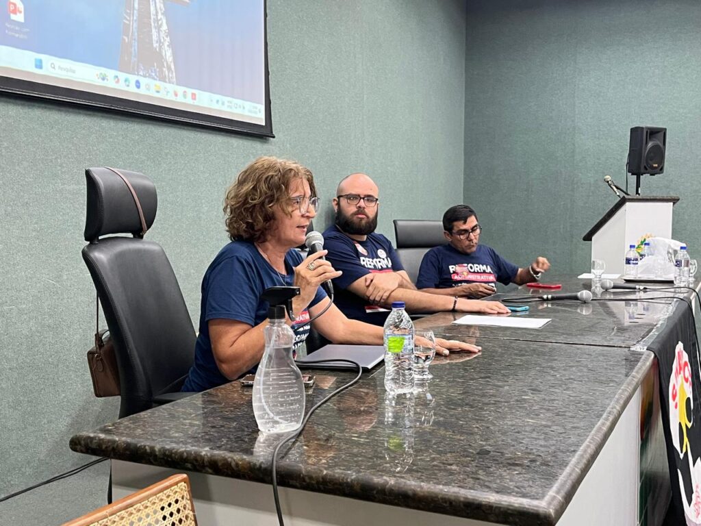 Eudes Baima analisou e pontuou artigos específicos do projeto, destacando a maneira como a proposta é tratada e apresentada estrategicamente à população: “Eles vendem a reforma administrativa na imprensa como se todos fossem juízes. E isso é feito para diminuir a pressão popular”, afirmou.