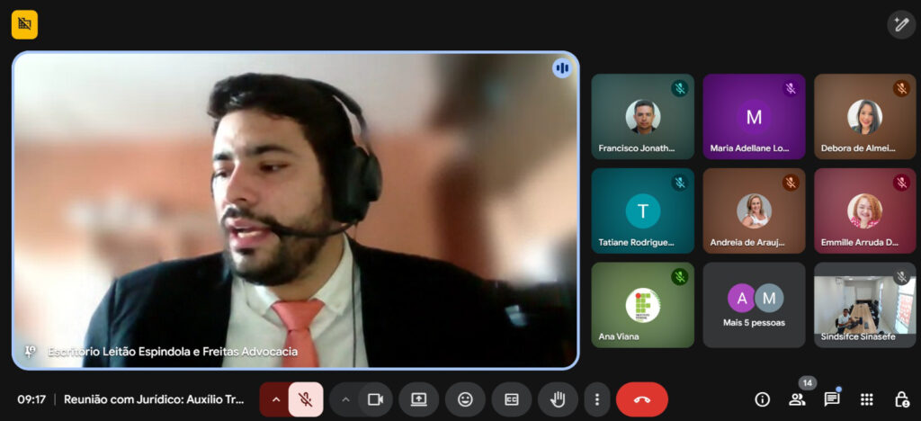 O SINDSIFCE realizou, nesta sexta-feira (5), uma reunião com a assessoria jurídica e os servidores e as servidoras da base sobre os descontos do auxílio-transporte.